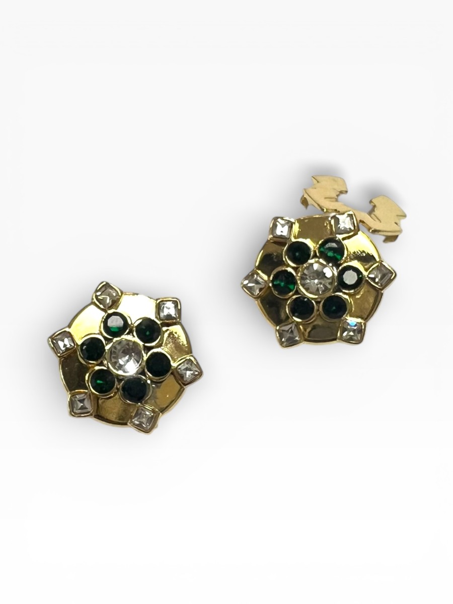 Cubrebotones de acero con mariquillas de cristal. Medida aproximada: 2 cm de diámetro